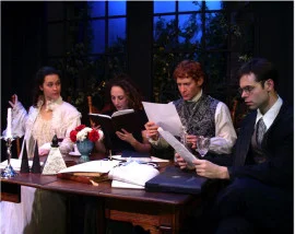 "When I closed the final page of Tom Stoppard's Arcadia eight years ago, time slowed. My head spun with more ideas than I could handle. Heartache crawled up the back of my throat. For the first time, I was able to see that what is in our heads can also be in our hearts, and the more relentless we are as thinkers, the more relentlessly we can love. Arcadia takes place in both the early 1800s and 2004. Hannah Jarvis and Bernard Nightingale are a modern-day pair of scholars independently visiting the estate of a landed aristocratic British family. Hannah seeks to unveil the identity of the Hermit of Sidley Park, while Bernard attempts to peg a murder he believes to have happened at the estate on none other than Lord Byron. Hannah and Bernard's scenes alternate with those involving a youthful tutor (Septimus Hodge) and his charge (Thomasina Coverly) from the time period Bernard and Hannah are studying. The enormity of Arcadia is staggering. Stoppard takes on literature, science, mathematics, and philosophy; he questions predestination and the nature of God; he dramatically pits intellectual rivals against each other and effortlessly stirs up an engrossing narrative of graceful simplicity. Every scene contains a core dramatic arc that shouldn't be hard to play correctly. Stoppard's dialogue is ferociously intellectual but full of nuances, wit, and beauty. He uses an enormous aristocratic estate as his setting and allows the play's action to bandy between two centuries. In short, he outdoes himself. Against such magnitude, Invisible City Theatre Company's (ICTC) production is startlingly intimate. The ensemble is working in a very tiny space with crisp design elements. Rather than admiring the morning room of Sidley Park from afar, the audience is in it. In this space, with these people, it is impossible to avoid succumbing to the quickly paced frenzy of ideas, impossible not to feel as though we are part of the fabric of that world. Kudos to ICTC for having the courage to mount this gigantic play in such a tiny space; their decision is counterintuitive, but it pays off magnificently. Rather than observe arguments, we are enveloped in them. And as Bernard, Hannah, and Valentine Coverly (Avery Clark), a graduate student studying mathematics, assert, the arguing itself is trivial, but the passions that drive the arguing are the reasons we live. ICTC turns out a uniformly well-acted show: sound ensemble acting with intelligent, heady, passionate performances all around. Actors go to school so they will have the chops to play Septimus, should the opportunity arise. Adam Devine gets under Septimus's skin and does not look back; he's rakish and heartbreaking and totally swoon-worthy. Christine Albright's Thomasina is precocious, brilliant and innocent. The delicacy of their relationship is heightened by the restraint in David Epstein's direction. Rebecca Miller's Hannah and David Ian Lee's Bernard are delightful contemporary contrasts that race against each other with fire and wit and full-bodied commitment to their ideals. It is a testament to the very fine work the ICTC does on this production that all those conflicting emotions and ideas I felt years ago flooded back at the show's end. But ICTC's production lifted me beyond what I already knew of Arcadia. What had been such a private experience reading the play was suddenly a shared experience. ICTC reaffirmed to me a very basic principle: plays, while nice to read, are meant to be seen. We are meant to congregate around these pieces together and assess their worth communally, not individually. I am thankful for the reminder. So, go see this play. Think relentlessly. And help this fine ensemble sell every seat in the house."